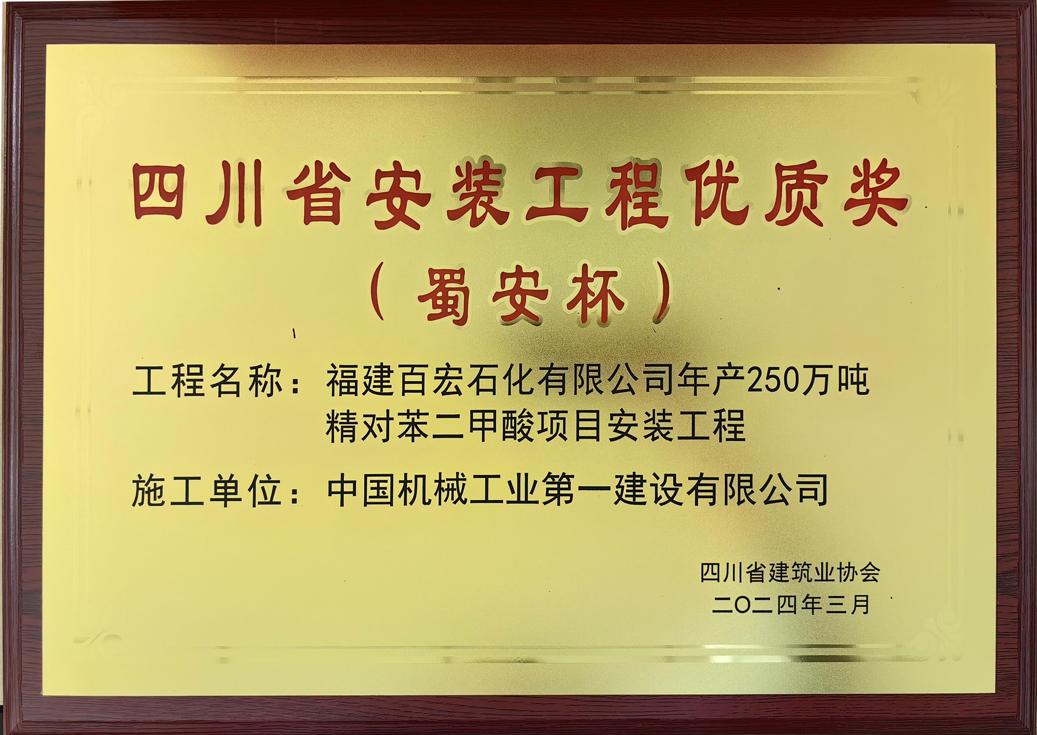 2023年四川省安装工程优质奖(蜀安杯)福建百宏石化有限公司年产250万吨精对苯二甲酸安装项目-凯发精英体育娱乐