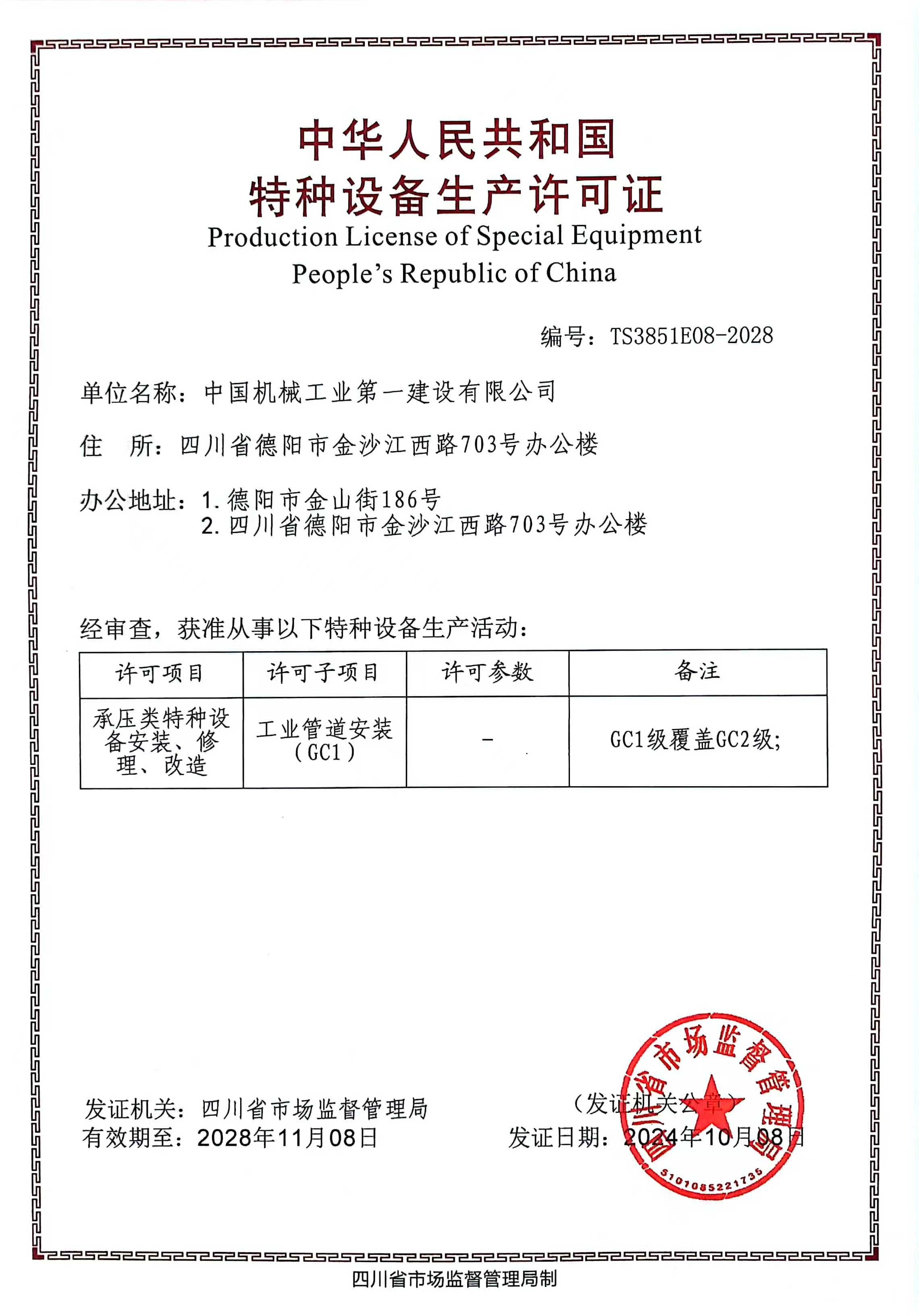 特种设备生产许可证(工业管道gc1)-凯发精英体育娱乐