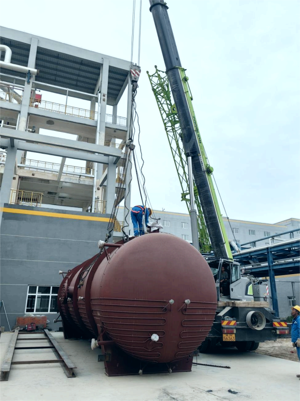 作为热媒站的“心脏设备”,该热媒喂料罐规格为dn3200x10000,长11.8米、宽3.86米、高3.97米,重达16吨,体积超过180立方米,具有体积大、质量重、安装精度要求高等特点。