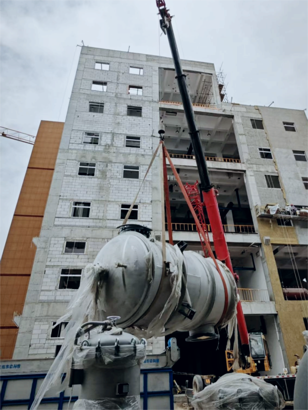 这一重要难点的攻破,标志着项目厂房安装全面转入系统调试与联动试运行阶段,为后续数十吨重的中聚釜吊装积累了宝贵经验。